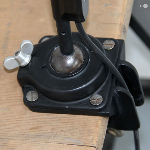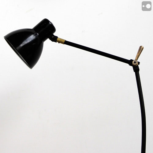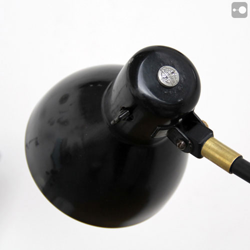 An adjustable pre-war industrial lamp by Körting & Mathiesen of Leipzig (Kandem) designed by the Bauhaus student Marianne Brandt and Hin Bredendieck. Very nice brass details and a bakelite switch on the shade. The lamp is in an excellent condition with a few marks on the shade.