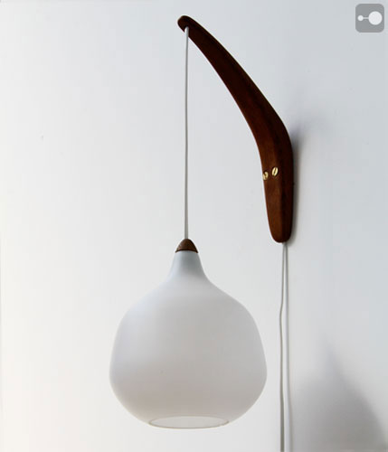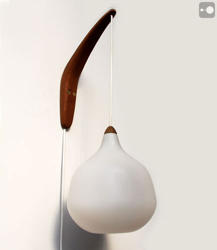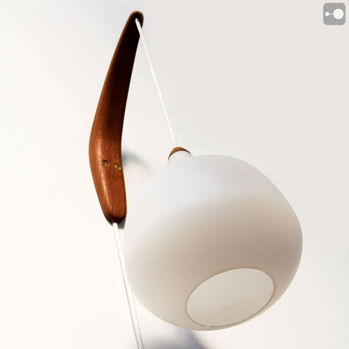 This beautiful was lamp was designed by Östen Kristiansson of Sweden, manufactured by Vittsjø. It is frosted cased-glass with a teak suspension, with the original switch. Perfect condition.