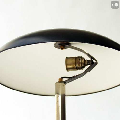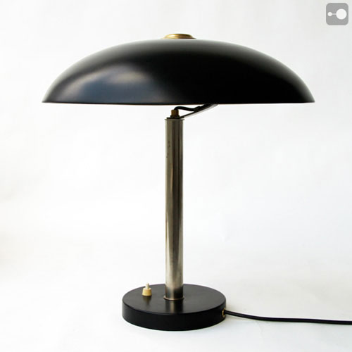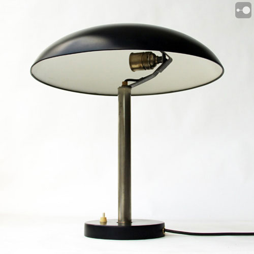 A rare Kaiser Idell Lamp 6659 by Christian Dell. No dents on the shade or base. The stem has some tarnishing of the nickel plating. Overall excellent condition. The shade has been refurbished and the lamp is rewired.