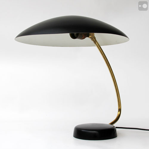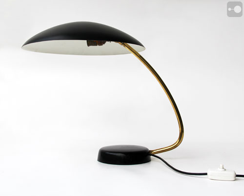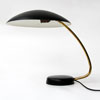 This is a very striking large desk lamp made from steel and brass. No dents or major scratches. The paint work is in very good condition.