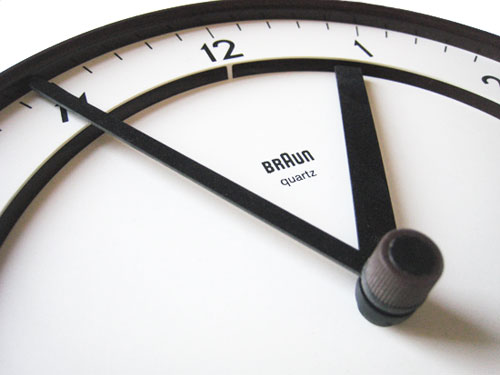Vintage clock design by Dietrich Lubs following the Braun principles of visual sophistication, rationality and geometrical simplicity developed initially by Hans Gugelot, Fritz Eichler and Otl Aicher (all from Ulm College for Design) and later by Dieter Rams.